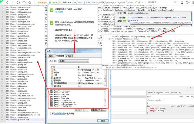 导入的证书及证书信息截图