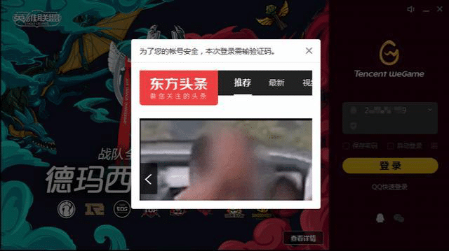 由于这个恶意软件本身劫持功能做的不够精细,还会造成用户在访问网络时出现各种故障,比如:腾讯游戏的相关网站被劫持后,验证码输入窗口被跳转到东方头条网站,导致用户无法正常登录WeGame,如下图所示: