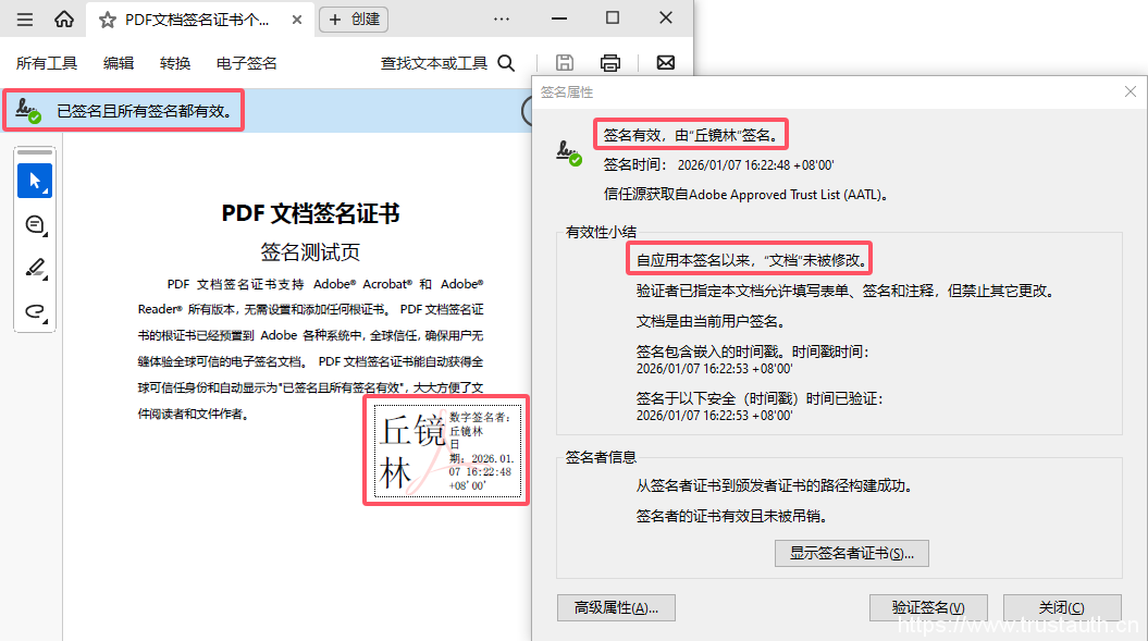 - 颁发机构已通过Adobe第三方权威国际可信列表认证,根证书已预置到 Adobe各种系统中,由该证书签名的文档能自动获得全球可信任身份并自动显示为“已验证的文档”;真正实现政府、企事业单位之间能方便地、安全地和可靠地实现PDF电子文件交换、电子合同签署和PDF重要机密文件的加密;